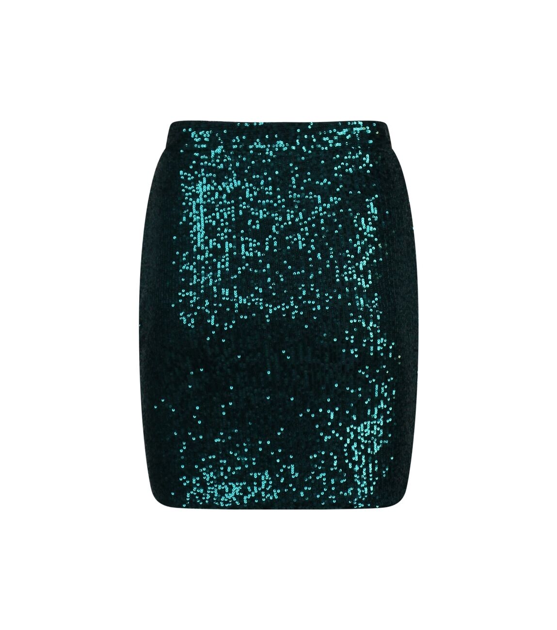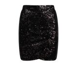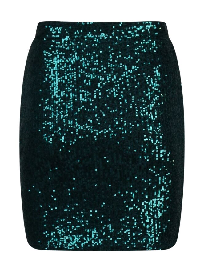 Deze rok komt boven de knie, heeft een rimpeling aan de voorzijde en zit vol met pailletten. Super leuk voor een feestje of kerst. Met een rits in de zij.