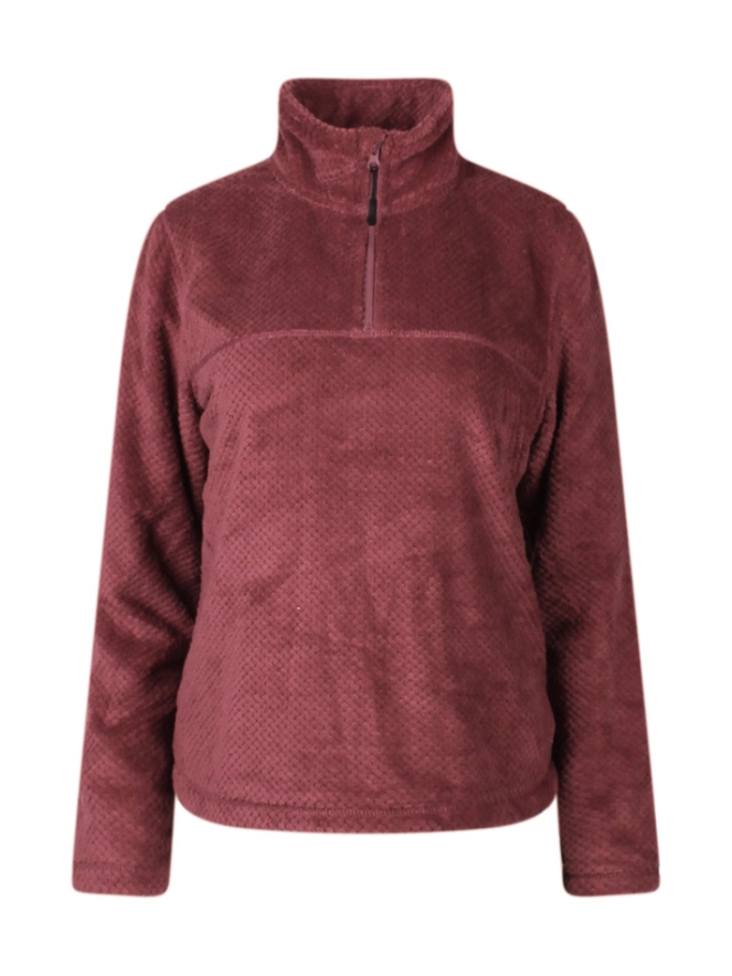 Deze dames fleece anorak heeft een sherpa gestanst patroon en een 1/4 ritssluiting. Voorzien van lange mouwen, biedt het zowel warmte als stijl.