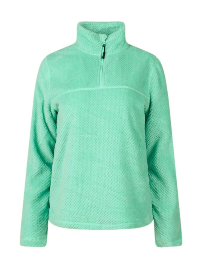 Deze dames fleece anorak heeft een sherpa gestanst patroon en een 1/4 ritssluiting. Voorzien van lange mouwen, biedt het zowel warmte als stijl.