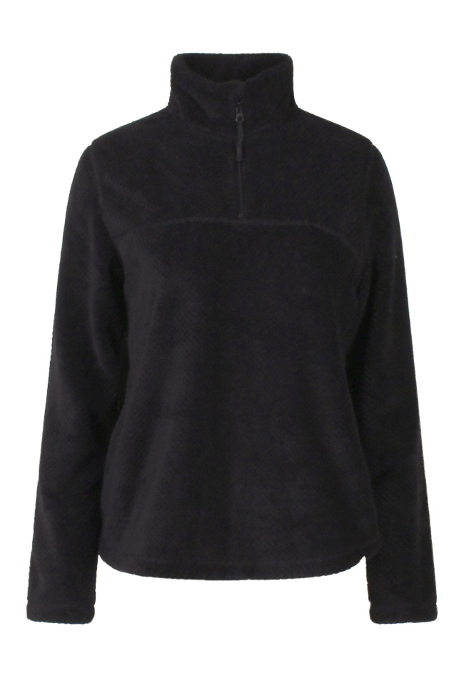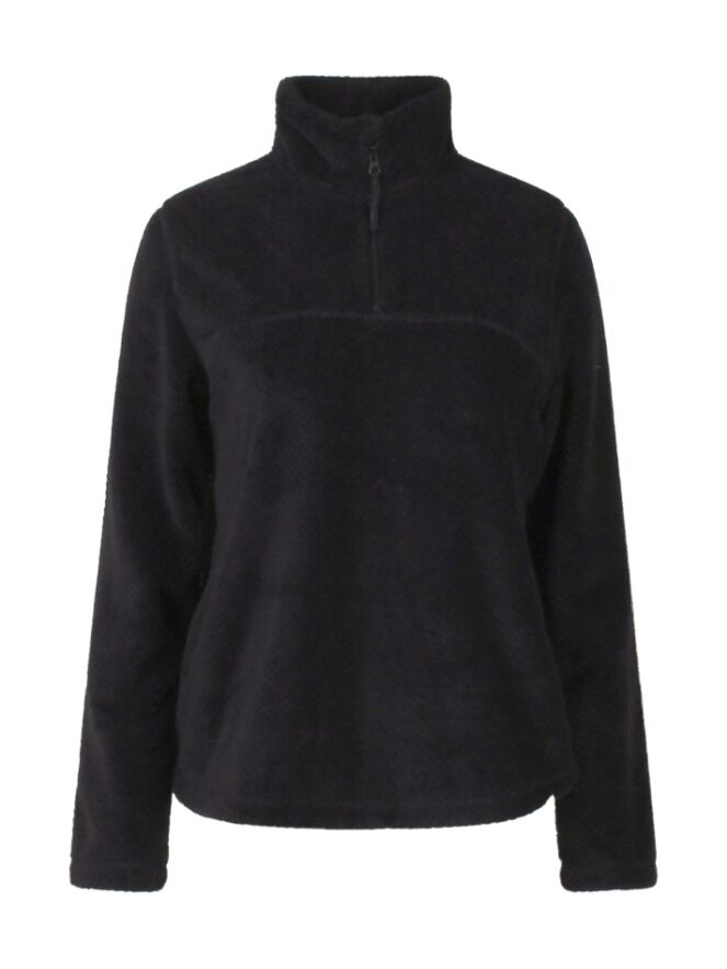 Deze dames fleece anorak heeft een sherpa gestanst patroon en een 1/4 ritssluiting. Voorzien van lange mouwen, biedt het zowel warmte als stijl.