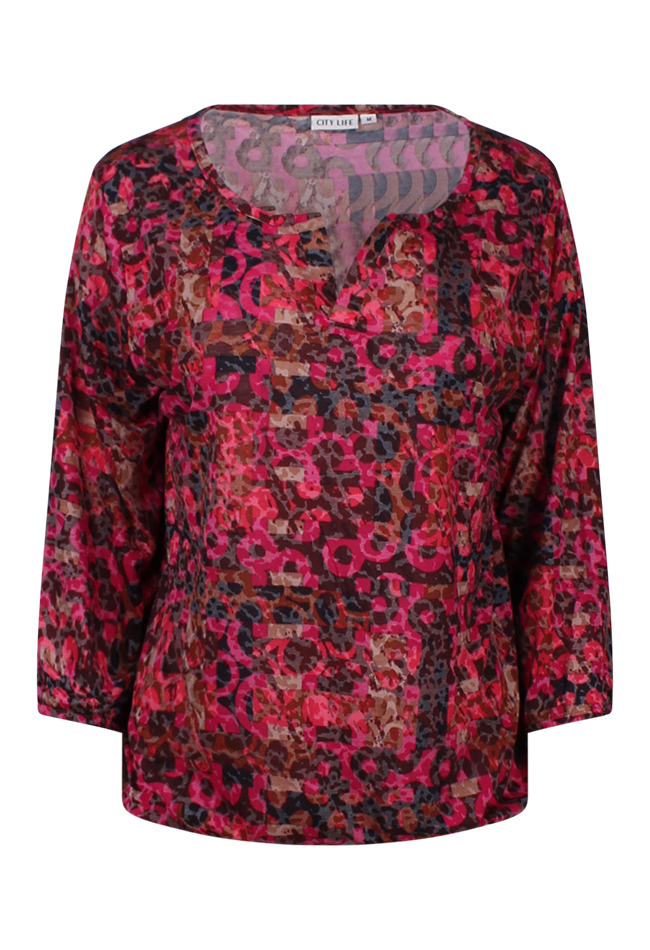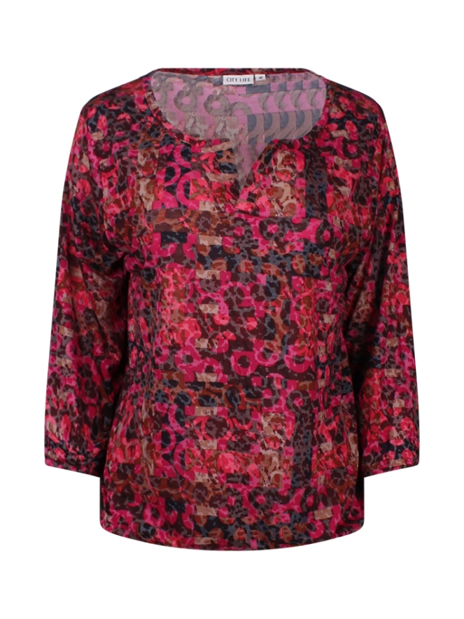 Dit dames T-shirt is gemaakt van Ausbrenner stof en heeft een grafisch dessin. De 3/4 mouwen zijn afgewerkt met elastiek in de boorden voor een comfortabele pasvorm. Dit T-shirt heeft een kleine v-hals.