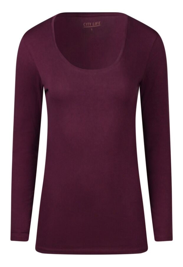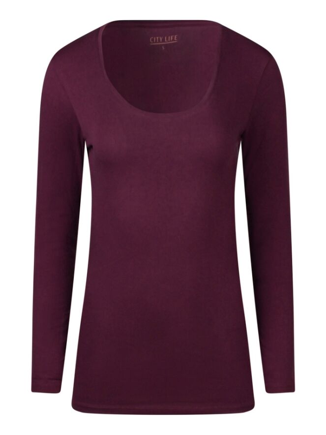 Basic T-shirt met lange mouwen en een diepe ronde hals. Draag het onder een blazer voor een nette casual look. En is het koud? Draag deze basic makkelijk onder je vest of trui. Musthave !
