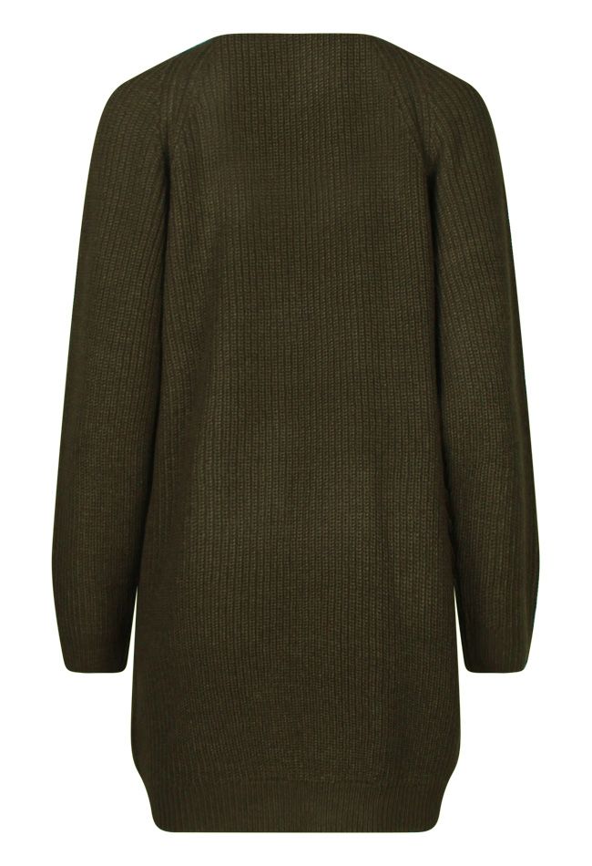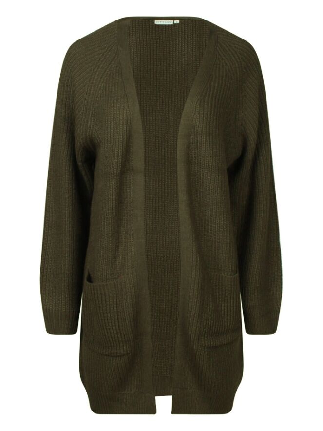 Tijdloos lang gebreid vest met zakken. Draag het over een top of blouse met spijkerbroek en je bent ready to go.