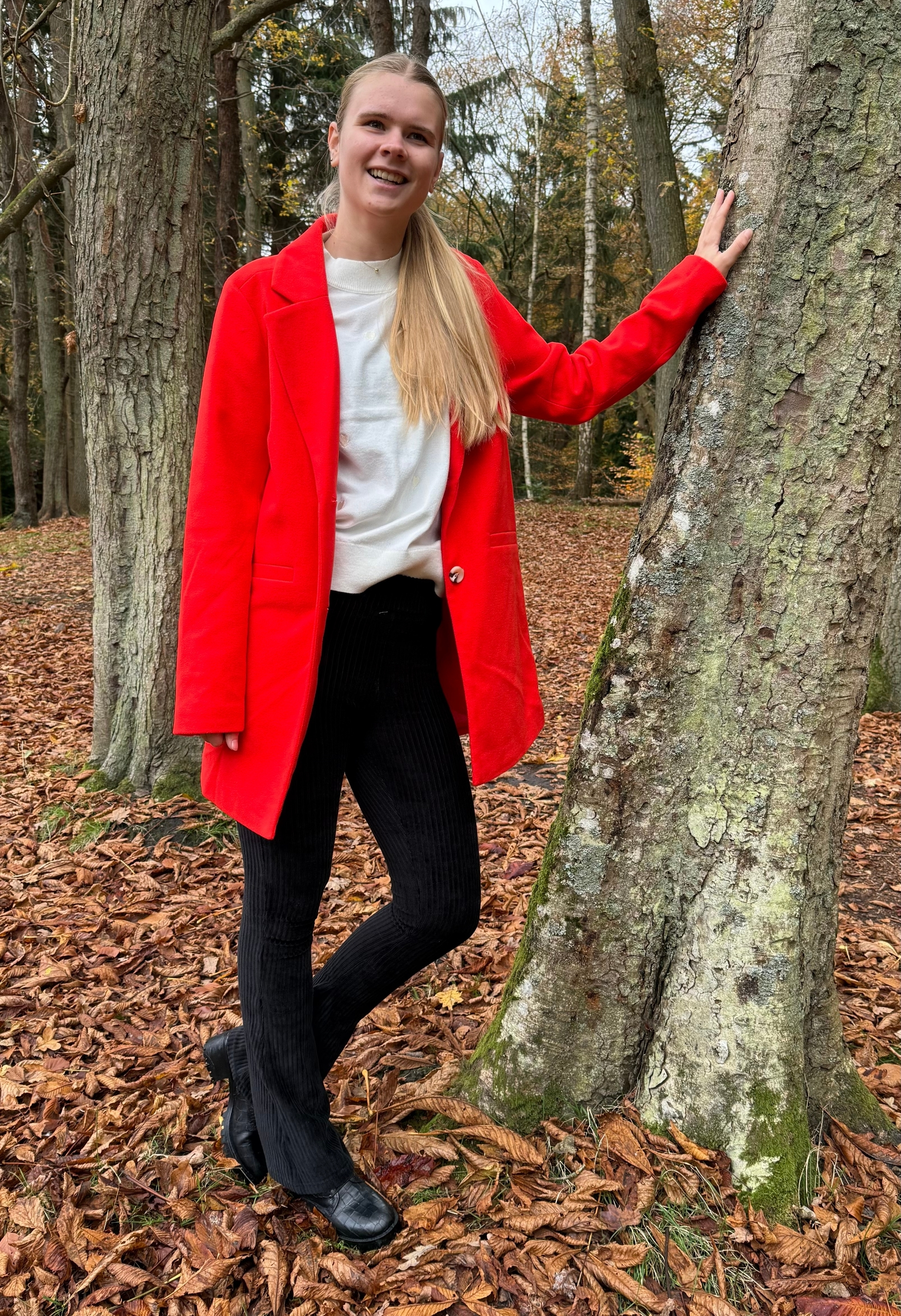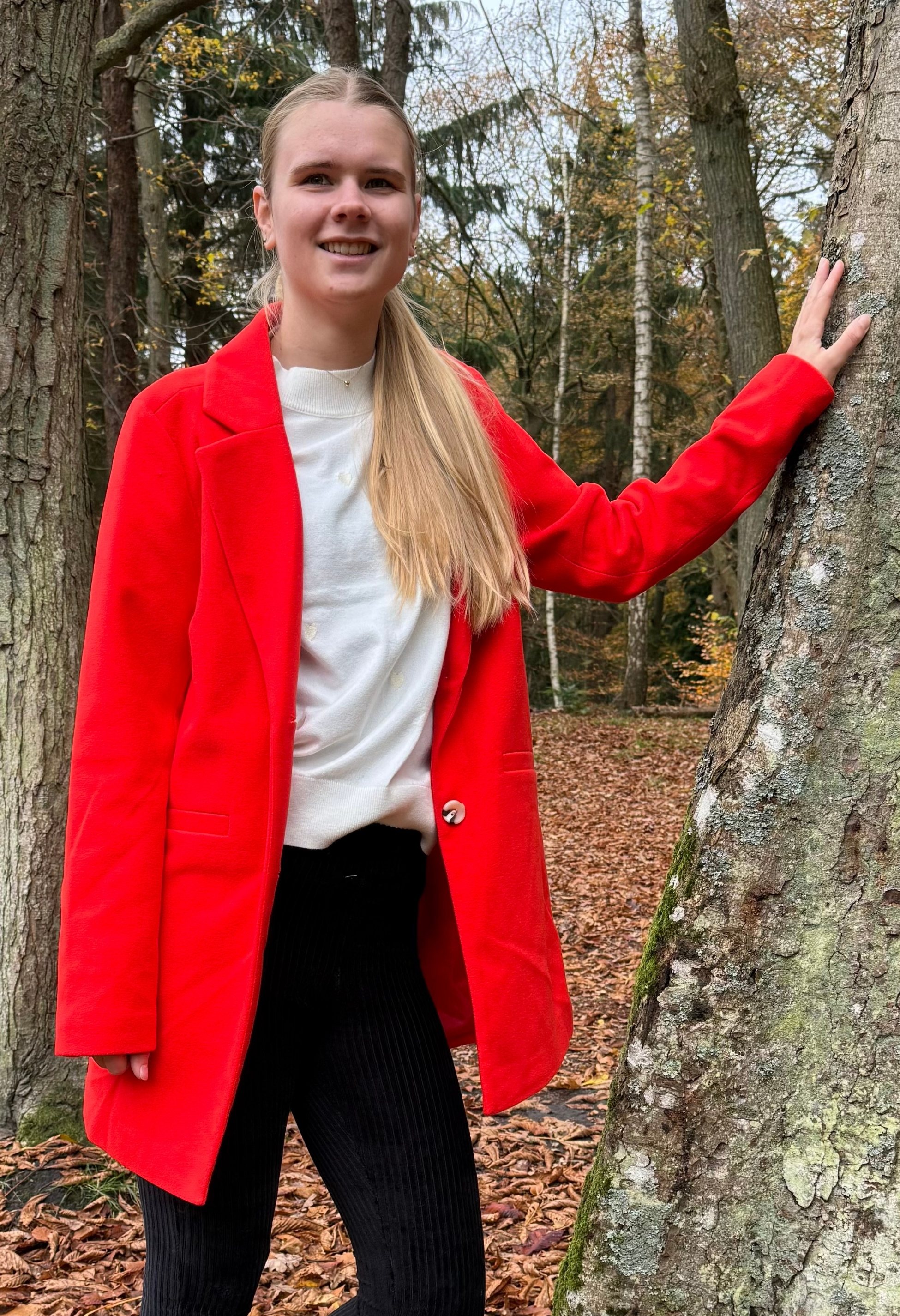 Deze klassieke dames jas heeft een wollook, een reverskraag, en zakken. De knoopsluiting zorgt voor een nette afwerking. Verkrijgbaar in twee opvallende trendy kleuren.