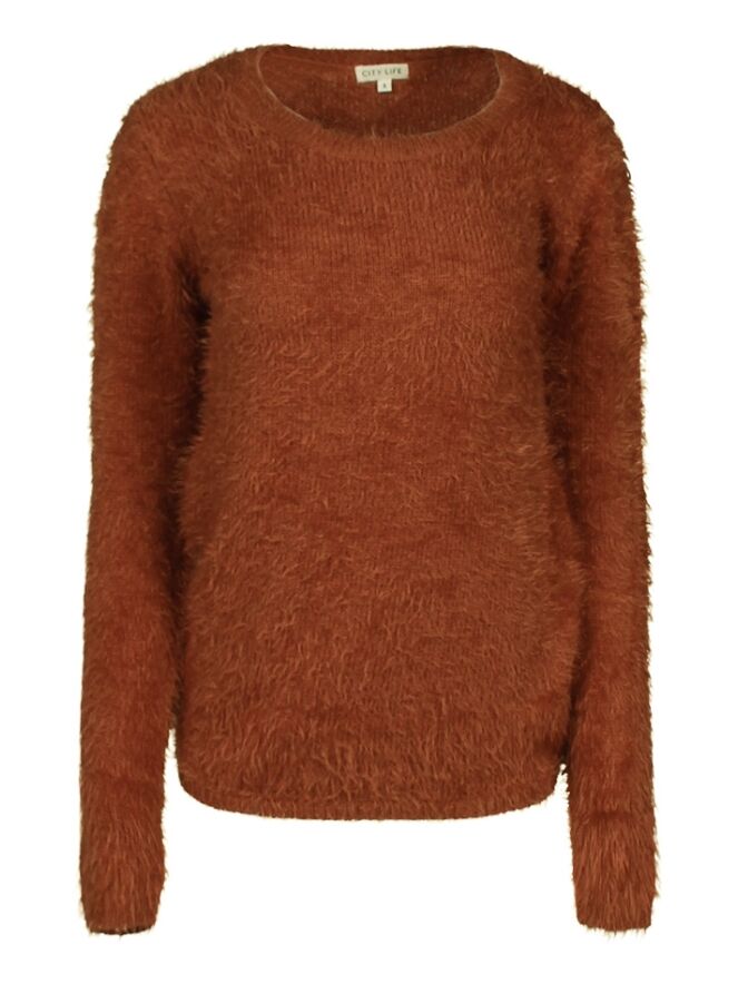 Deze trui gemaakt van hele zachte featheryarn houd je lekker warm deze winter! Door de featheryarn heeft deze trui een pluizig effect.