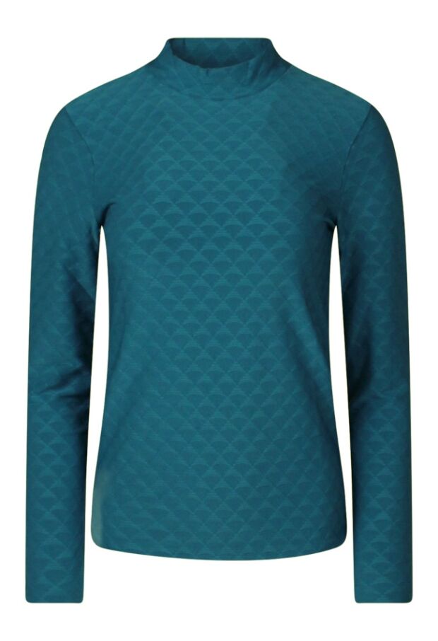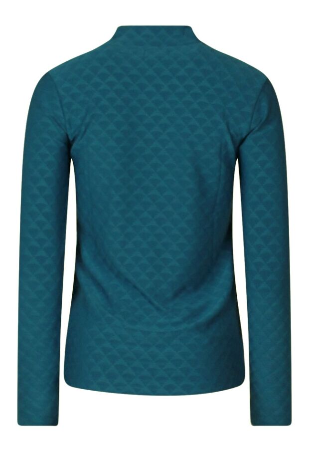 Fraaie top met aansluitende turtleneck. In de stof zit een driehoek patroon wat hem net even anders maakt. Combineer hem met een leuke gilet of draag gewoon warm onder een vest!