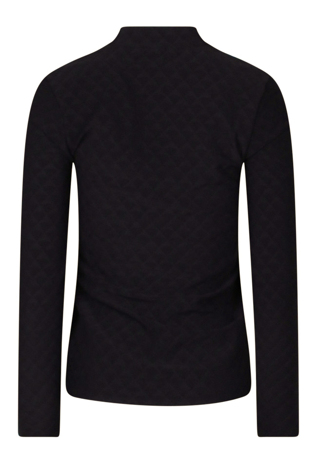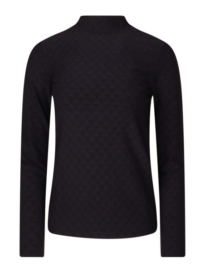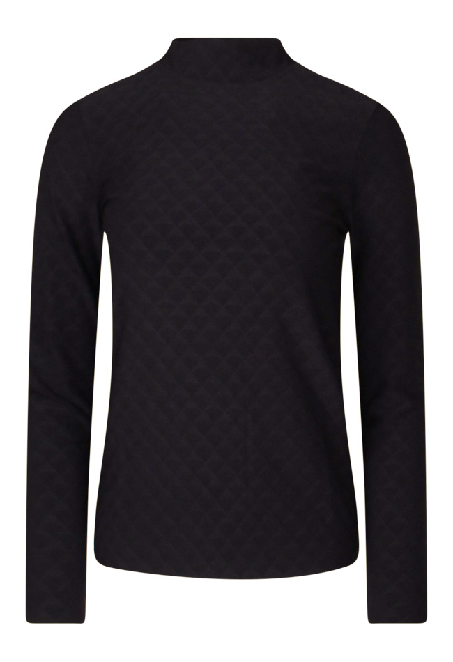 Fraaie top met aansluitende turtleneck. In de stof zit een driehoek patroon wat hem net even anders maakt. Combineer hem met een leuke gilet of draag gewoon warm onder een vest!