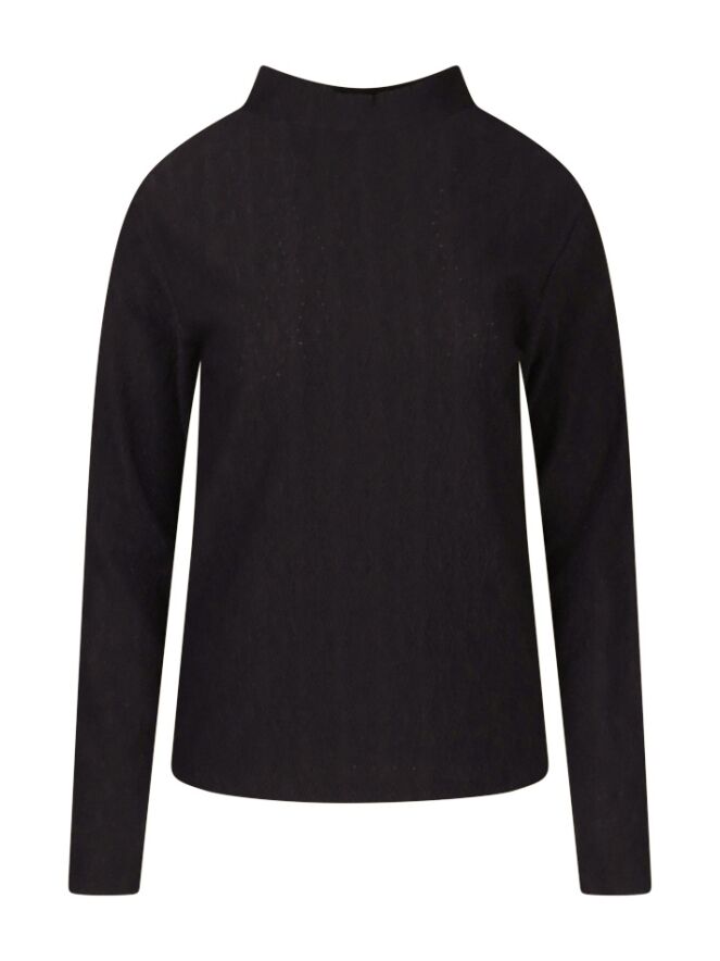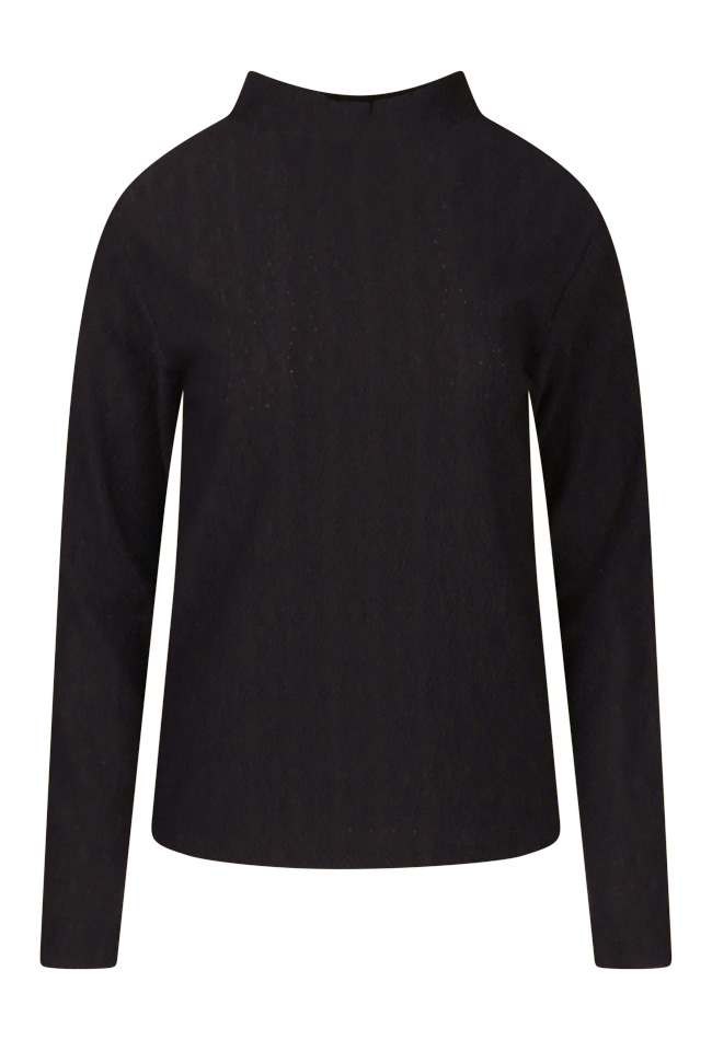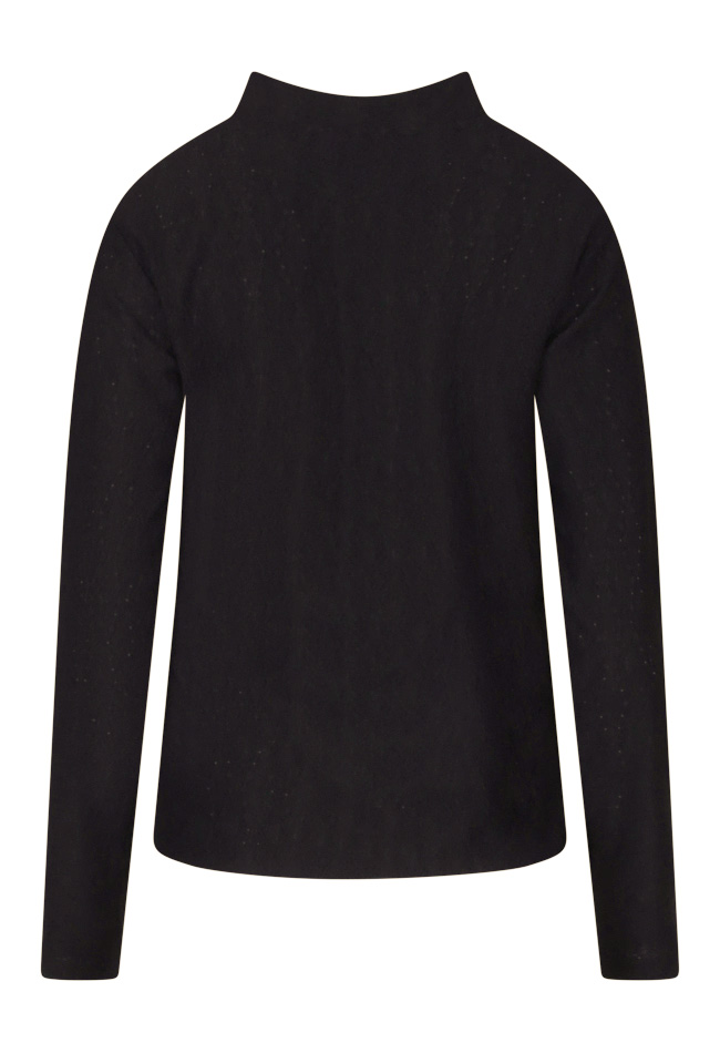 Top met een hoge hals, gemaakt van een ajour stof. Deze top kun je combineren met een jeans en gilet voor een complete look.