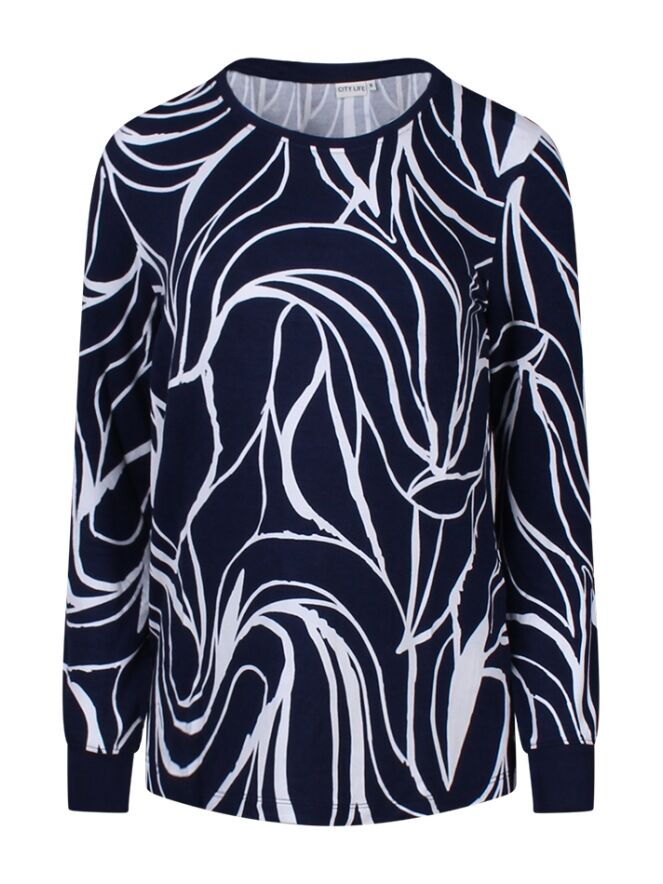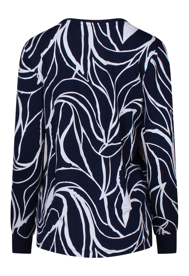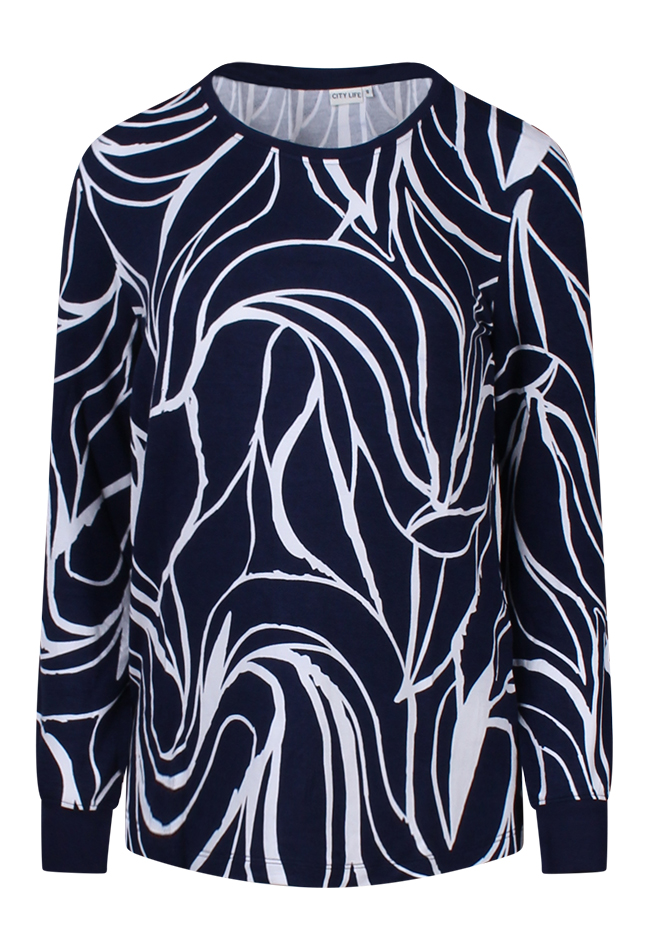 Dunne sweater met grafische print. Je kunt de sweater super leuk combineren met een effen gilet.