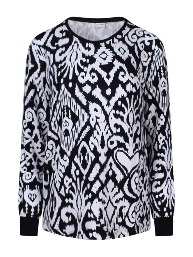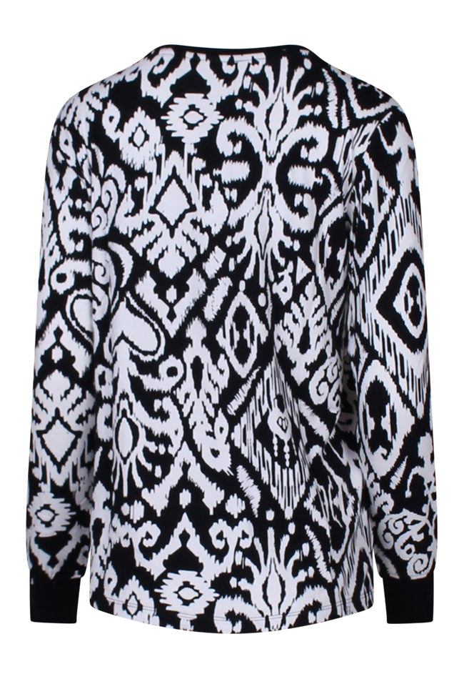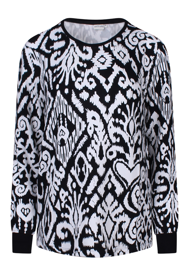 Dunne sweater met grafische print. Je kunt de sweater super leuk combineren met een effen gilet.