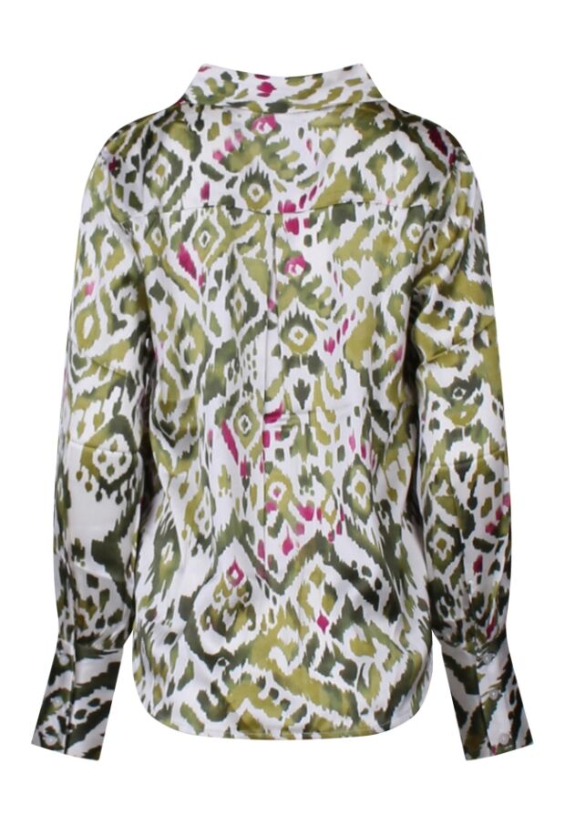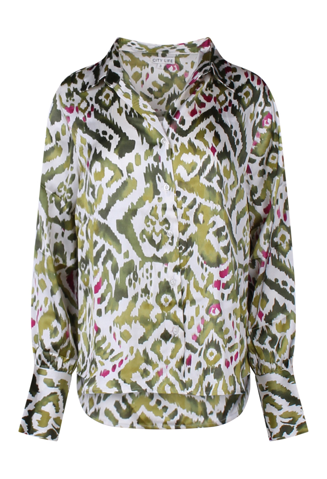 Ruimvallende dunne blouse van City Life met kleurrijk Ikat patroon. Draag deze blouse onder een effen gekleurde blazer of zo gewoon op een rok of jeans.