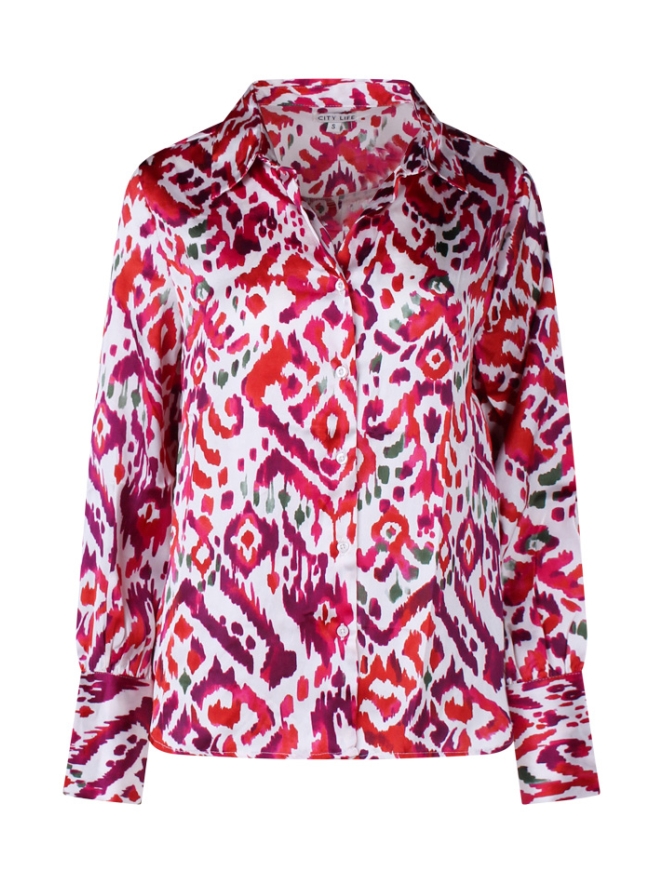 Ruimvallende dunne blouse van City Life met kleurrijk Ikat patroon. Draag deze blouse onder een effen gekleurde blazer of zo gewoon op een rok of jeans.