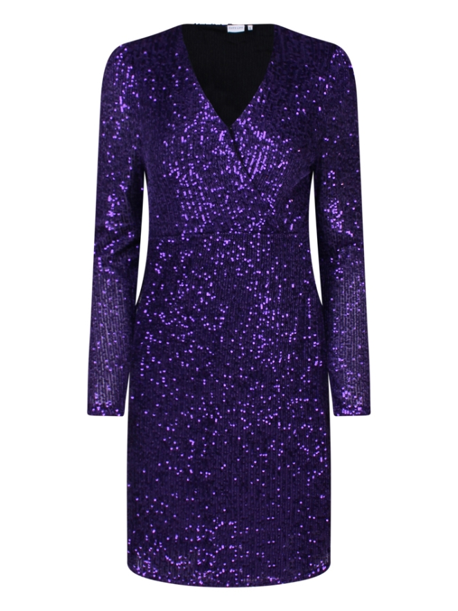 Party time! Deze prachtige jurk heeft alles wat je zoekt! Deze jurk met pailletten heeft een kleine overslag met knoopje aan de voorkant waardoor hij super mooi staat. Ga jij voor zwart, champagne of paars? Have fun!