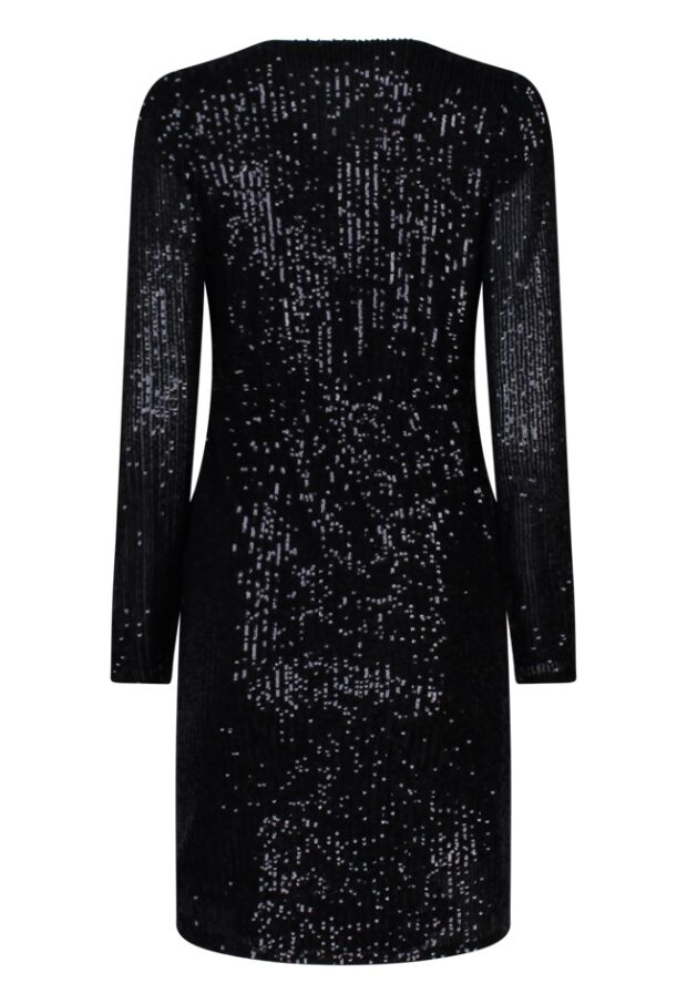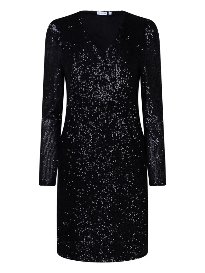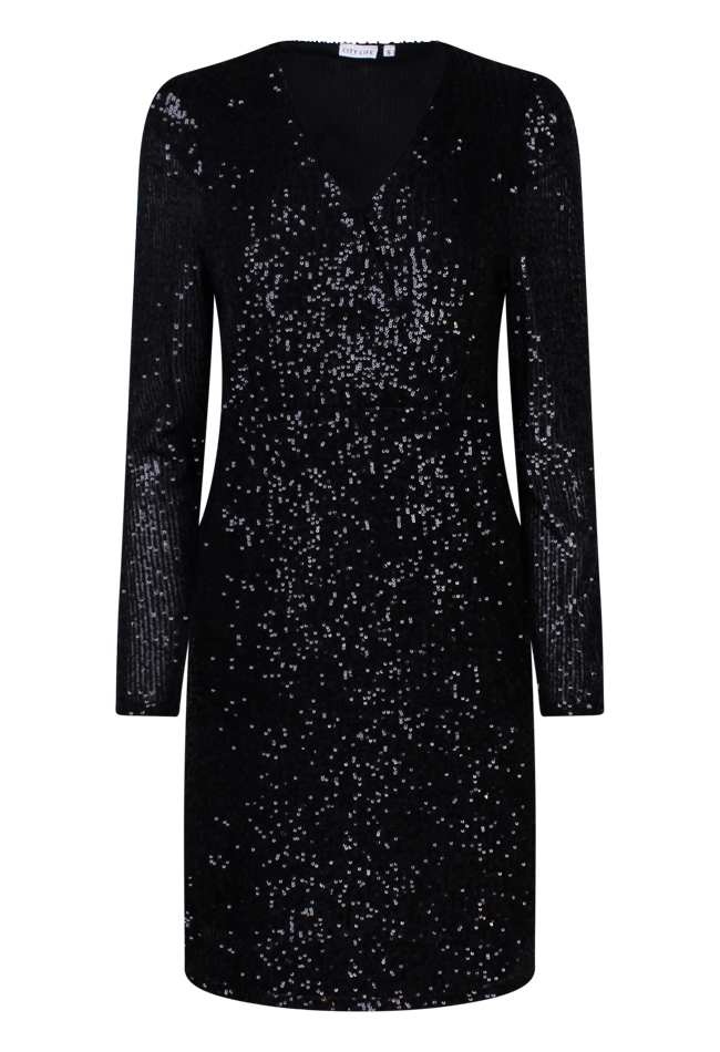 Party time! Deze prachtige jurk heeft alles wat je zoekt! Deze jurk met pailletten heeft een kleine overslag met knoopje aan de voorkant waardoor hij super mooi staat. Ga jij voor zwart, champagne of paars? Have fun!