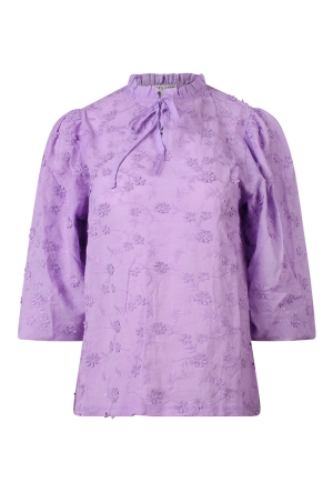 Prachtige ajour top met lange mouwen, een pofmouw en een nette V-hals. Draagt leuk onder een colbert of spijkerjasje maar kan natuurlijk ook zo gewoon ontzettend stijlvol gedragen worden.