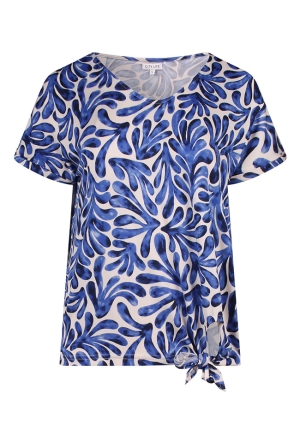 Prachtige top van ajour. Deze schijnt niet door omdat hij dubbele stof heeft. Toppie! Met een mooie V-hals en als extra detail een strikband in de taille.