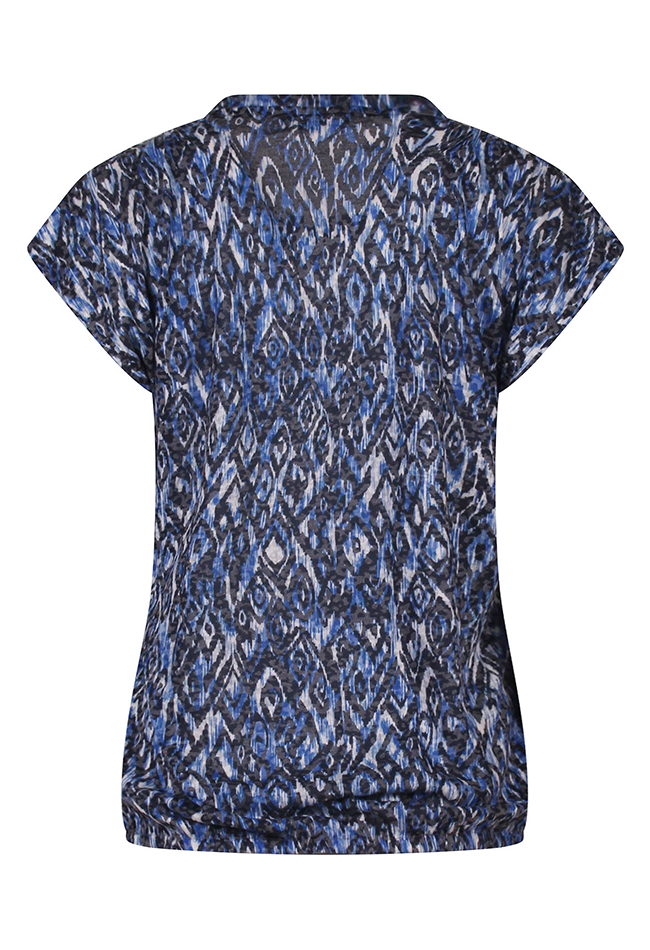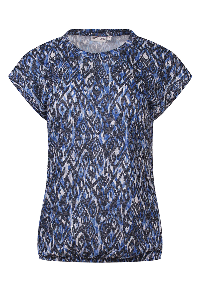 Dit casual T-shirt met korte mouwen combineert comfort met een eigentijdse stijl. Het shirt is voorzien van een opvallende grafische print en een aantrekkelijke kleurenmix. Dankzij het elastische taillebandje krijgt het shirt een flatterende pasvorm die zich subtiel aan je lichaam aanpast. Perfect te combineren met jeans, shorts of een casual rok voor een moderne, veelzijdige look.