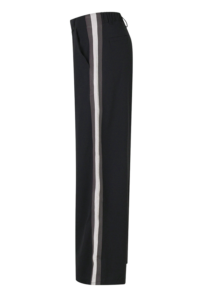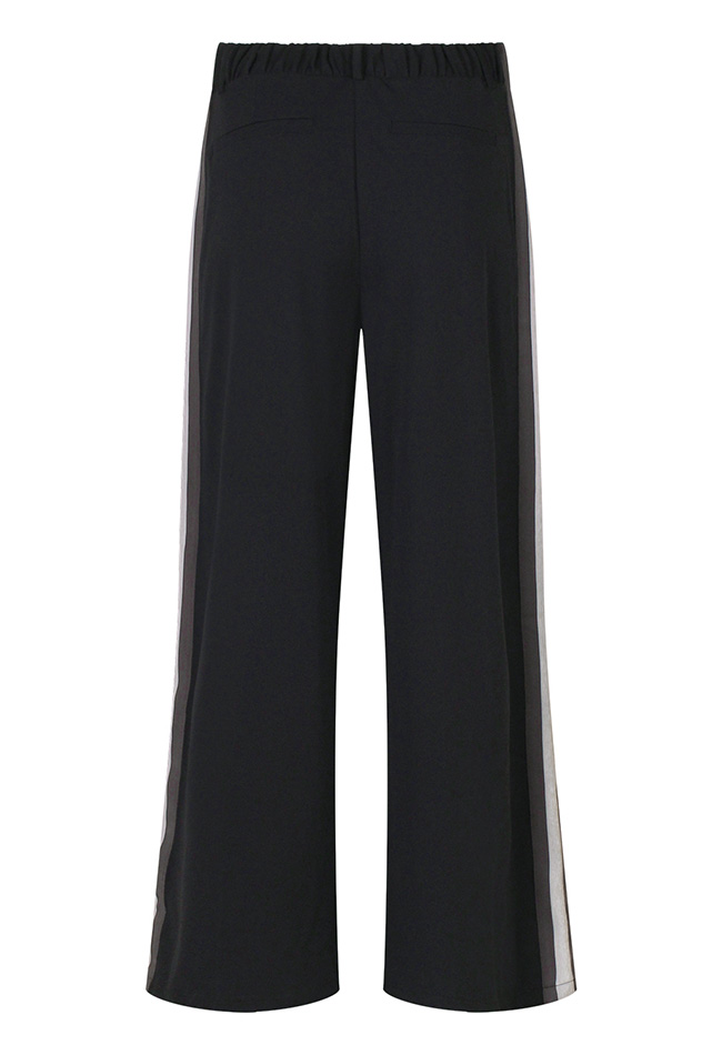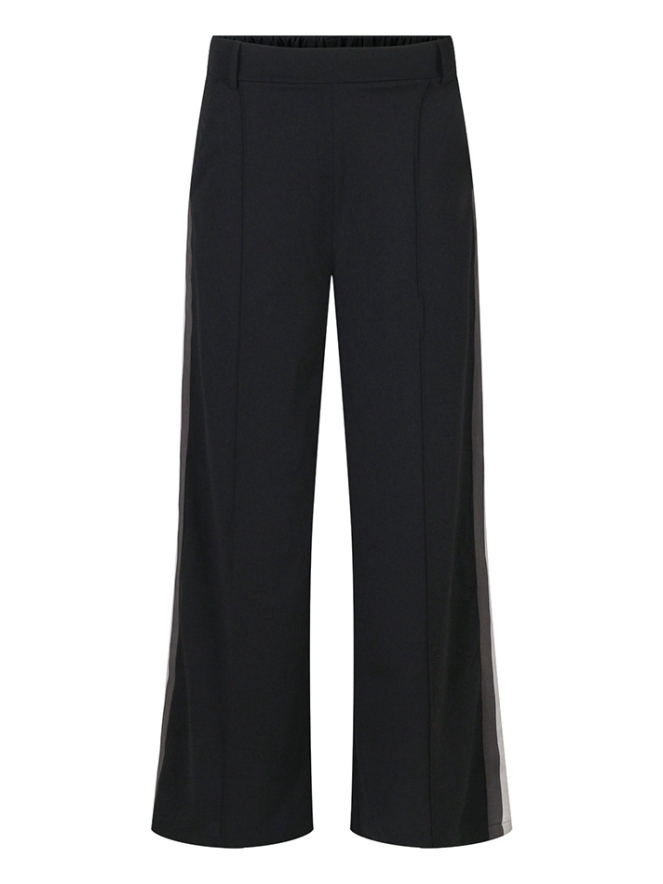 Deze stijlvolle damespantalon combineert comfort met een sportieve touch. Het opnaadje zorgt voor een elegante, slanke pasvorm, terwijl de opvallende streep langs de zijkant een trendy, casual look toevoegt. Perfect te combineren met zowel een blouse voor een nette uitstraling als een T-shirt voor een relaxte, sportieve outfit.
