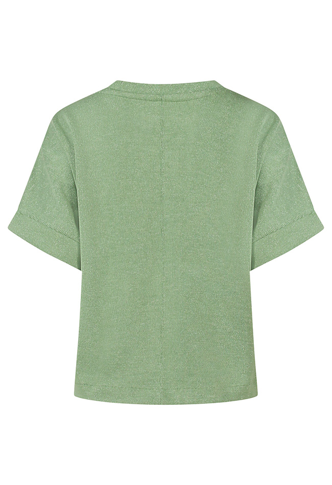 Deze stijlvolle damestrui met korte mouwen combineert comfort met een subtiele glamoureuze uitstraling. De trui is gemaakt met lurex glitterdraad, wat zorgt voor een elegante sparkle zonder overdreven te zijn. Dankzij de comfort fit valt het model soepel en prettig om het lichaam, waardoor de trui zowel casual als gekleed te dragen is.