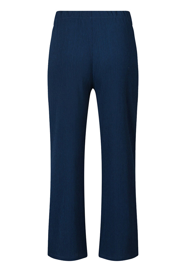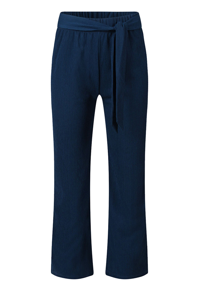 Deze damespantalon is uitgevoerd in een luchtige crinkle stof die zorgt voor een speelse, licht gekreukte look zonder in te leveren op elegantie. De soepele stof valt mooi langs het lichaam en biedt een comfortabele pasvorm, ideaal voor zowel casual als geklede momenten.