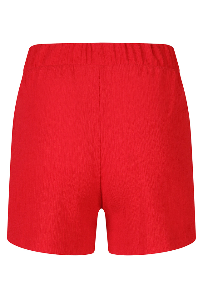 Deze dames korte broek is gemaakt van luchtige crinkle stof, wat zorgt voor een speelse, licht gekreukte look en een comfortabel draaggevoel. De short heeft een flatterende pasvorm en is voorzien van een strikceintuur in de taille, waarmee je eenvoudig de perfecte fit creëert. Dankzij de praktische steekzakken combineert deze broek stijl met functionaliteit. Ideaal voor warme dagen en moeiteloos te stylen voor zowel een casual als zomerse outfit.