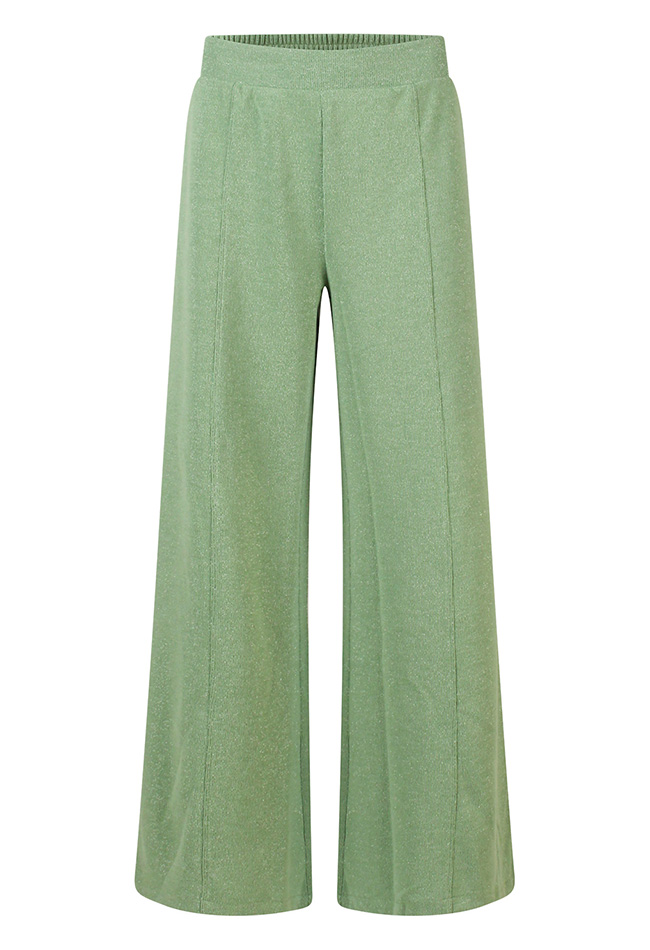 Deze stijlvolle damesbroek combineert comfort met een subtiele sparkle. De broek is uitgevoerd met verfijnd lurex glitterdraad, waardoor hij een elegante glans krijgt die perfect is voor zowel overdag als ?s avonds.