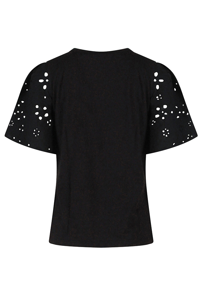 Elegant shirt met verfijnde broderie details en een vrouwelijke uitstraling. Voorzien van een ronde hals en speelse vlindermouwen die zorgen voor een luchtig en sierlijk effect. Gemaakt van comfortabel materiaal, ideaal voor zowel een casual als een nette look. Perfect te combineren met een rok of jeans voor een stijlvolle outfit.