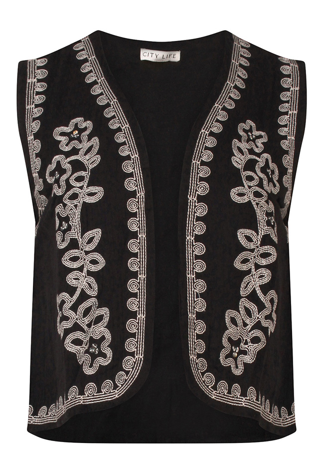 Geef je outfit een speelse, vrije uitstraling met dit prachtige bohemian gilet voor dames. Gemaakt van luchtige mousseline stof voelt het gilet heerlijk licht en comfortabel aan. Perfect voor zonnige dagen en lange festivalavonden. Het verfijnde borduurwerk in combinatie met subtiel glinsterende pailletten zorgt voor een unieke, handgemaakte look die meteen in het oog springt. De losse pasvorm en open voorkant maken het gilet ideaal om te layeren over een top, jurk of bikini.