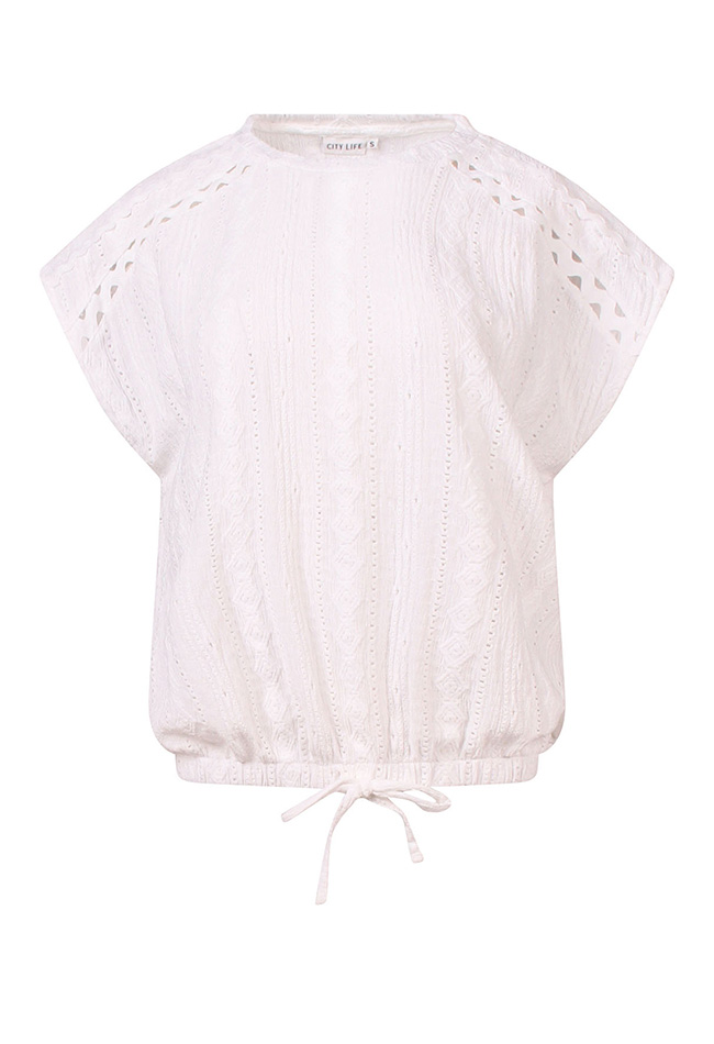 Deze ajour top voor dames is een stijlvolle en luchtige toevoeging aan je garderobe. Het verfijnde ajourpatroon zorgt voor een speelse, vrouwelijke uitstraling en maakt de top perfect voor zowel warme dagen als gelaagde outfits. Dankzij het elastische koord in de taille creëer je moeiteloos een mooie, getailleerde pasvorm die je silhouet flatteert. De top zit comfortabel en biedt tegelijkertijd een trendy look die zowel casual als chic te combineren is.