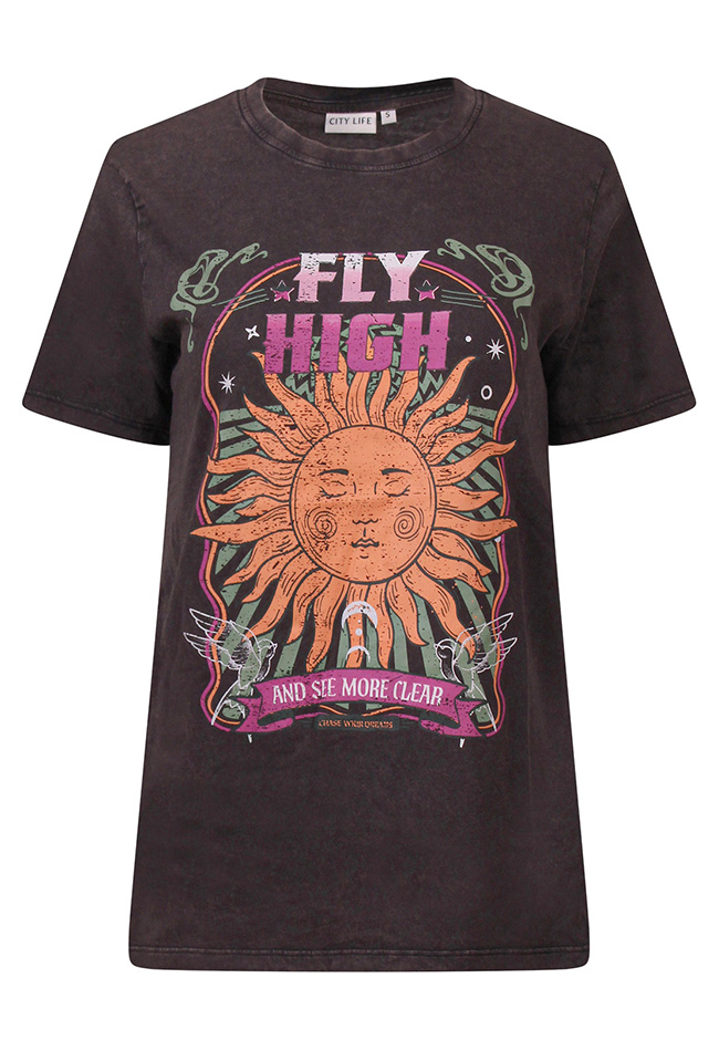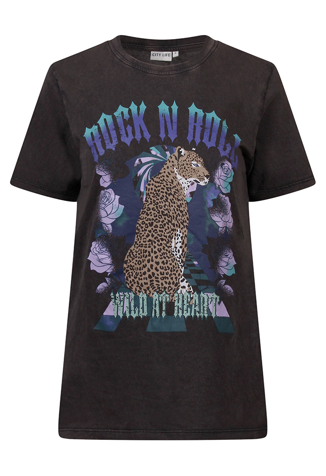 Stoer T-shirt met korte mouwen en een klassieke ronde hals. Het shirt heeft een trendy acid wash effect dat zorgt voor een unieke, vintage uitstraling. Voorzien van opvallende een opvallende print die een edgy en eigentijdse look geven. Gemaakt van comfortabel materiaal en perfect te combineren met jeans of een leren jas voor een krachtige, casual outfit.