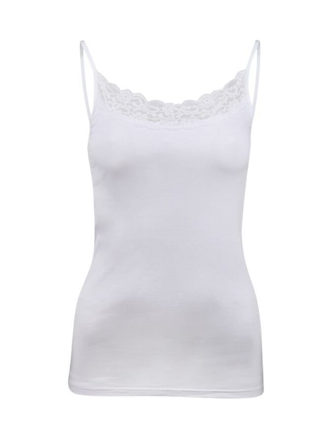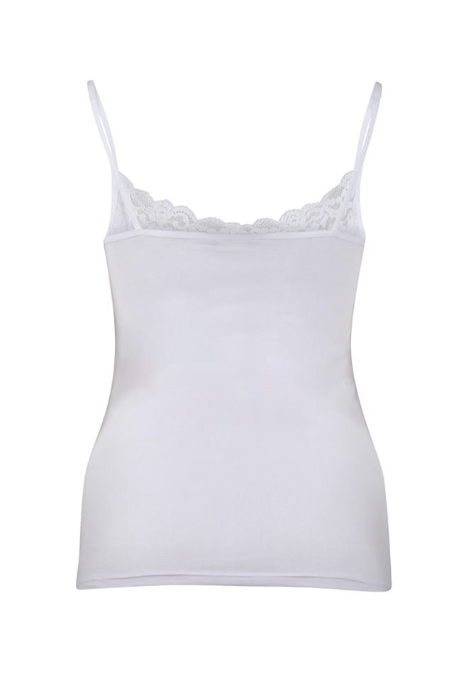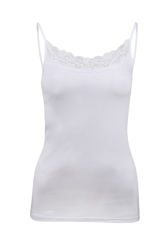 Singlet van City Life. Het hemd heeft spaghetti bandjes en een kanten bovenkant. Materiaal: 95% katoen, 5% elasthan. wassen op 30 graden, niet bleken, niet in de droger, kan gestreken worden.