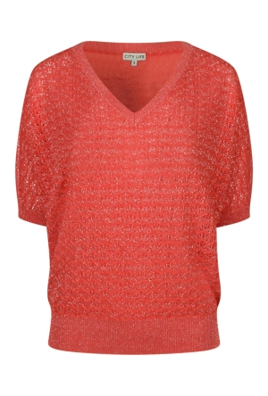 Singlet van City Life. Deze singlet heeft een hemd model en v-hals. Aan de voorzijde met onder de buste een stofknoop.