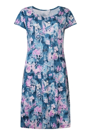 Jurk met korte mouwen en een allover bladerprint.