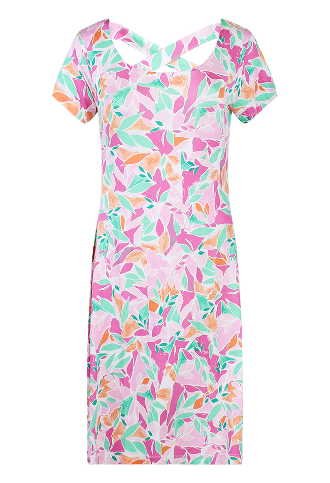 Jurk met een allover bloemenprint en kruisbanden op de rug.