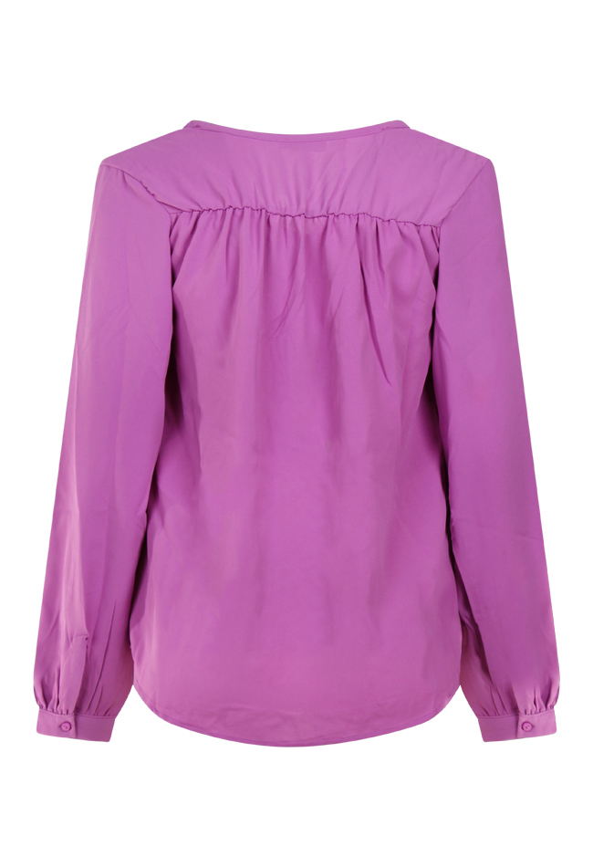 Blouse met lange mouwen, een V-hals en drie knopen aan de voorkant.