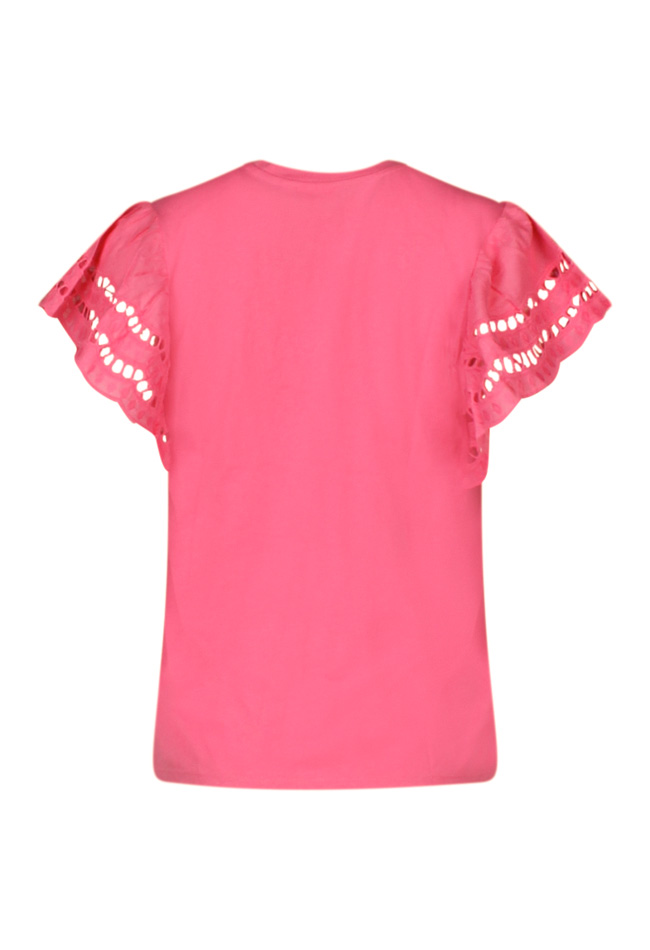 He cutie! De bijzondere kapmouw van deze trendy top die is gemaakt van ajour broderie voegt een uniek element toe aan dit stijlvolle shirt. Een super leuke aanvulling voor een comfy look als jij naar een feestje gaat, de supermarkt binnen loopt of op een terrasje zit! Waar wacht je nog op?