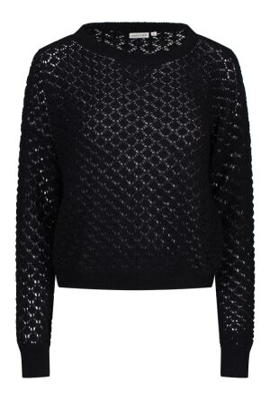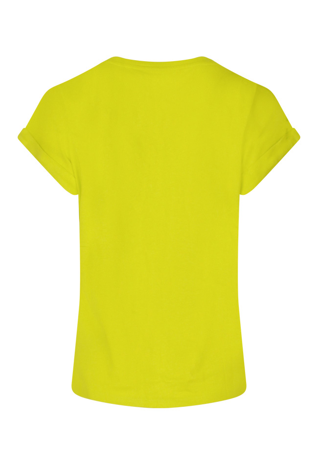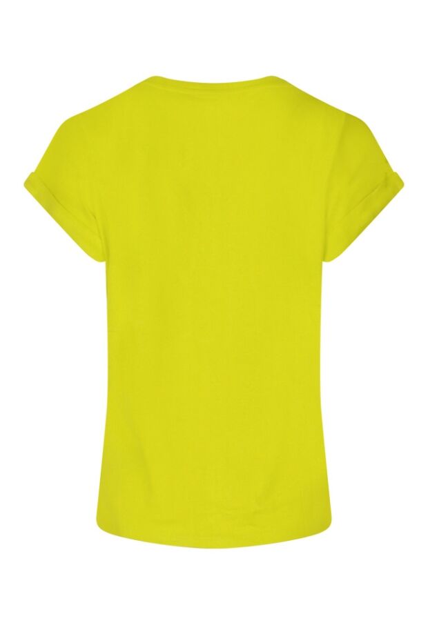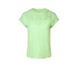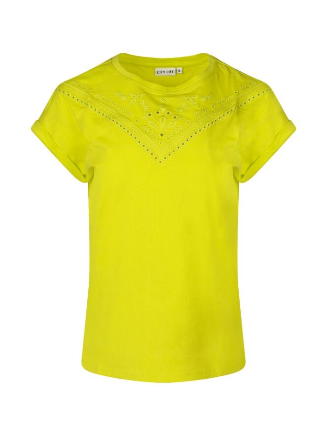 Dit T-shirt met omslagmouw heeft een broderie effect voor rondom de hals.