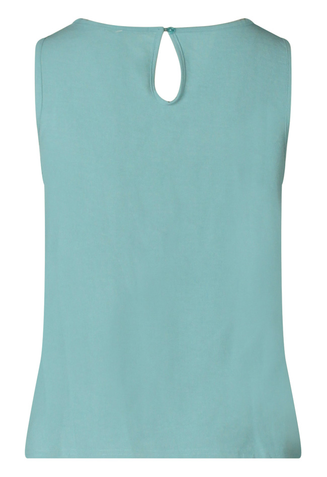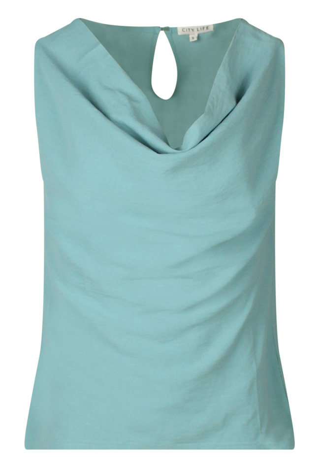 Deze singlet met gedrapeerde hals heeft een druppeluitsparing ter hoogte van de hals aan de achterkant.