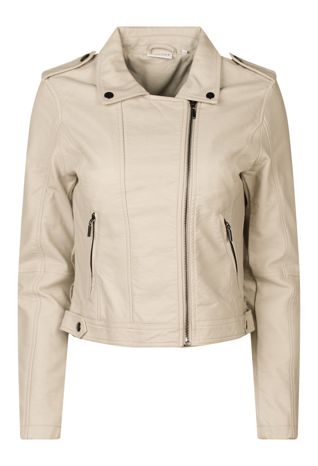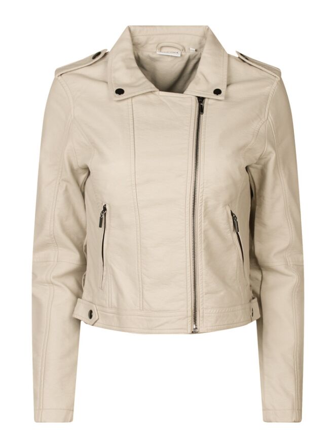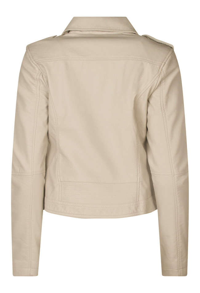 Dit look a like leren jackje van polyurethaan heeft een reverskraag en ritszakken.