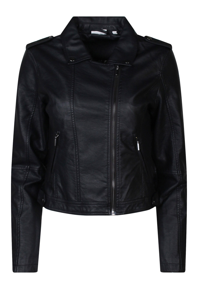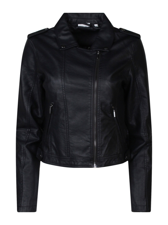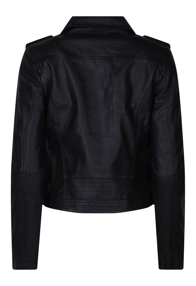 Dit look a like leren jackje van polyurethaan heeft een reverskraag en ritszakken.