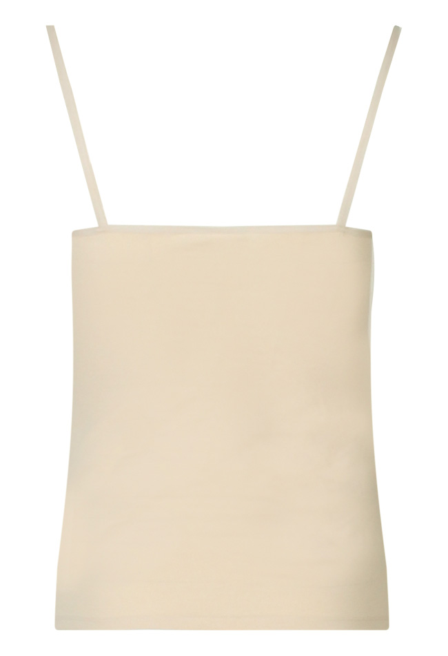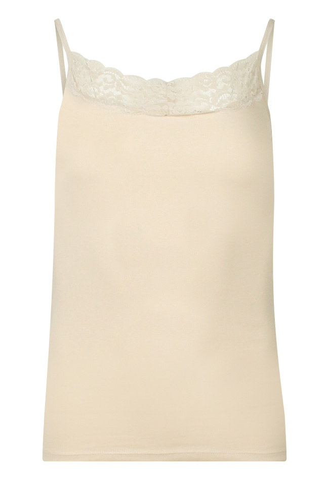 Dit hempje met spagettibandjes heeft een kanten afwerking.