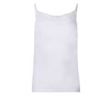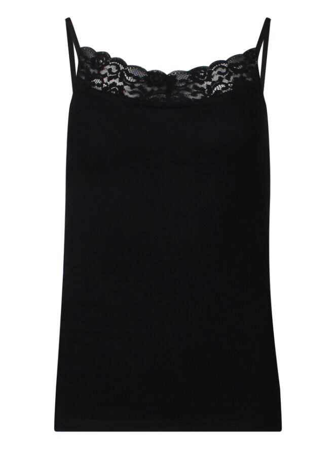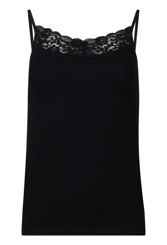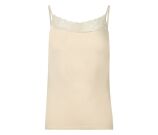 Dit hempje met spagettibandjes heeft een kanten afwerking.
