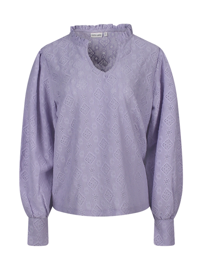 Deze top van Polyester ajour heeft een pofmouw en ruche rond de hals. De hals heeft een kleine uitsnede. Deze top hebben we voor je in 5 kleuren! Welke is jouw new favorite?