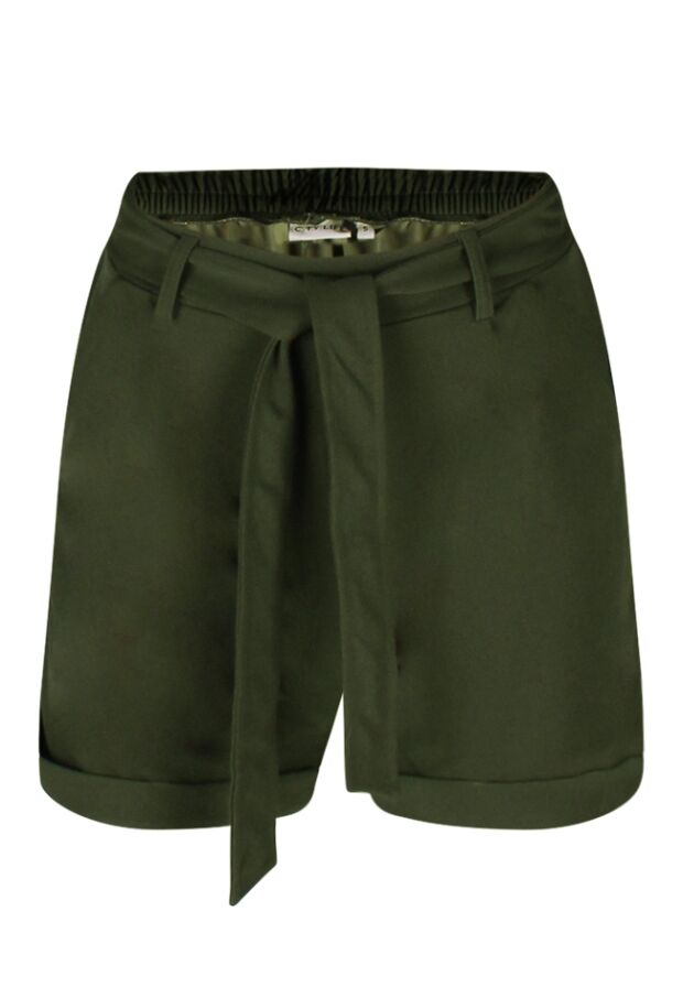 Deze dames short is gemaakt van een soepel vallende stof en draagt heerlijk comfortabel. De taille is voorzien van een strikceintuur en elastiek aan de achterkant voor een fijne pasvorm. Met twee praktische steekzakken en een speelse omslag aan de broekspijpen is deze short zowel stijlvol als functioneel.