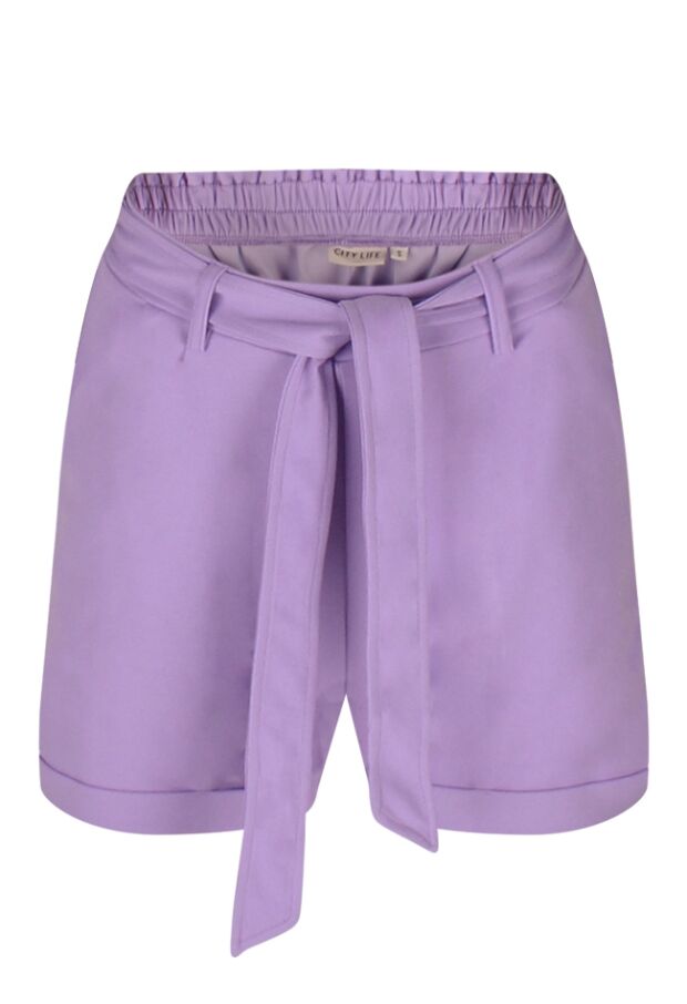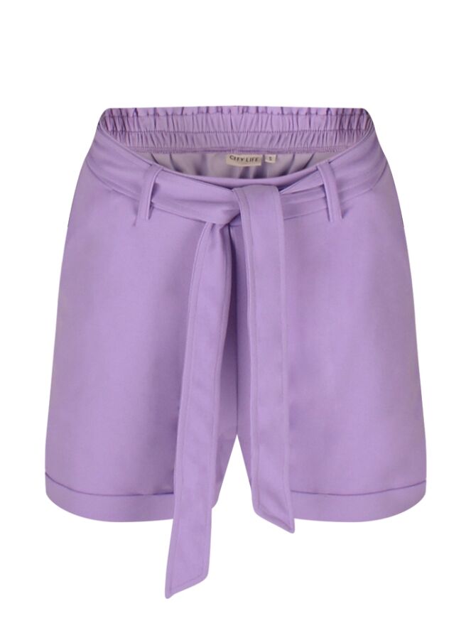 Deze dames short is gemaakt van een soepel vallende stof en draagt heerlijk comfortabel. De taille is voorzien van een strikceintuur en elastiek aan de achterkant voor een fijne pasvorm. Met twee praktische steekzakken en een speelse omslag aan de broekspijpen is deze short zowel stijlvol als functioneel.