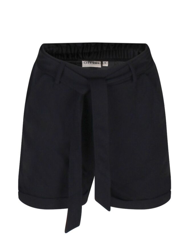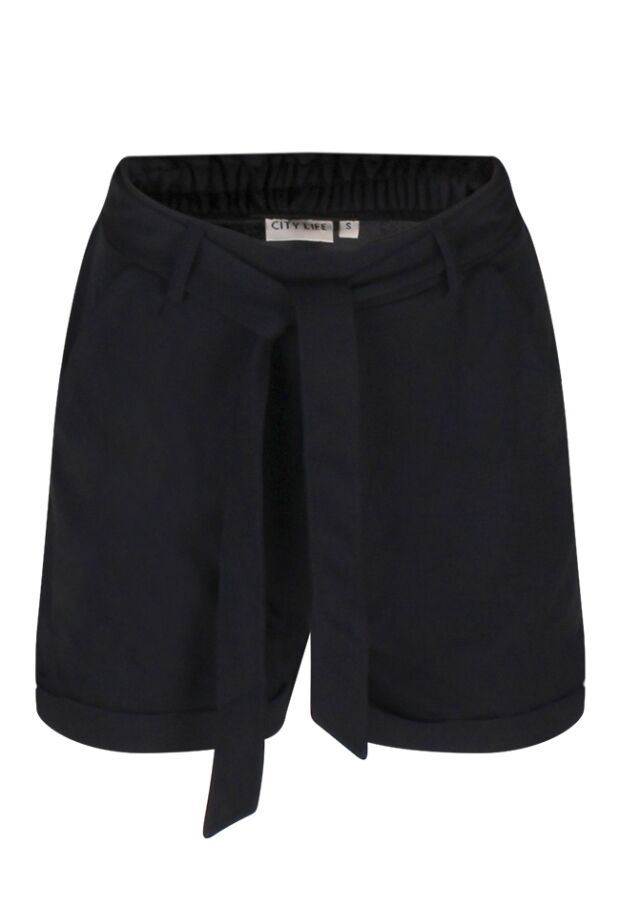 Deze dames short is gemaakt van een soepel vallende stof en draagt heerlijk comfortabel. De taille is voorzien van een strikceintuur en elastiek aan de achterkant voor een fijne pasvorm. Met twee praktische steekzakken en een speelse omslag aan de broekspijpen is deze short zowel stijlvol als functioneel.
