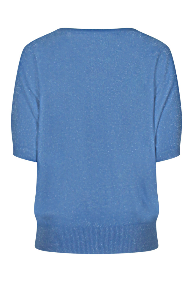 Deze top met vleermuismouw heeft een allover glitterdraad door de stof. Met een V hals. Leuk te dragen op rokken of jeans.