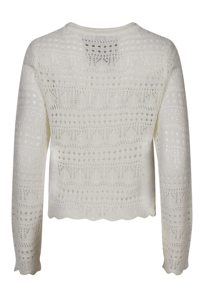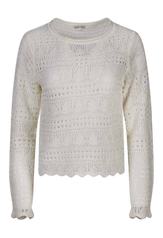 Zomerse trui met open ajourbreisel. Met sierlijk patroon. Leuk te combineren met jeans, draag hem over je bikini of wat minder opzichtig en niet doorzichtig te combineren met een hemdje eronder.