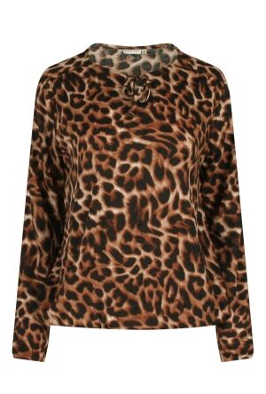 Deze elegante blouse is gemaakt van een crinkle satin stof en heeft een verfijnde bladprint. De V-hals en de knoopsluiting geven het een klassieke uitstraling, terwijl het strikdetail aan de onderkant zorgt voor een speelse, vrouwelijke touch.