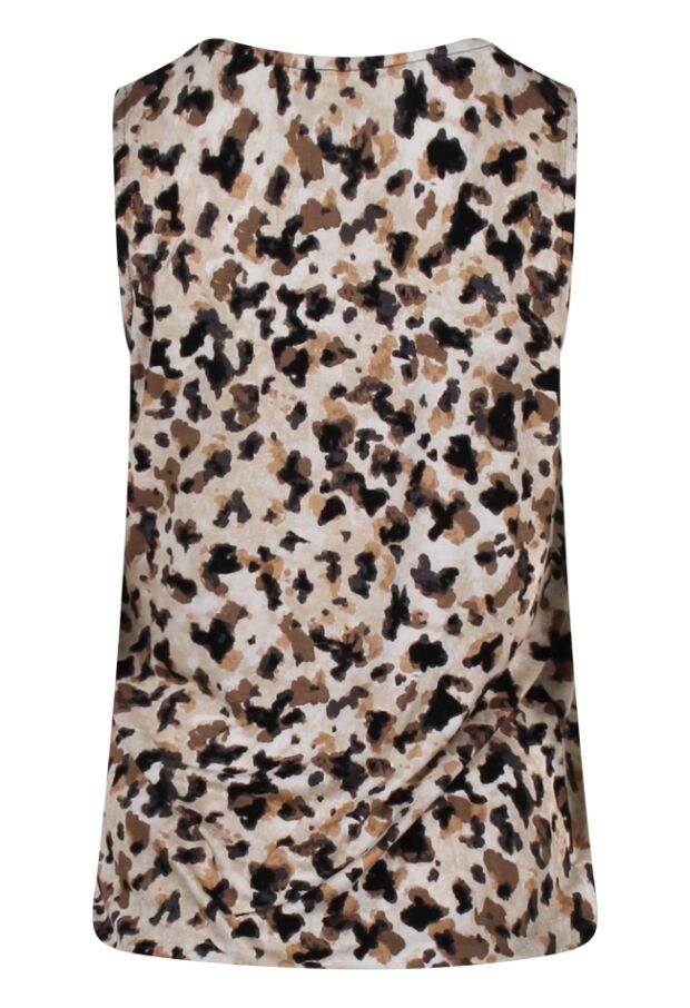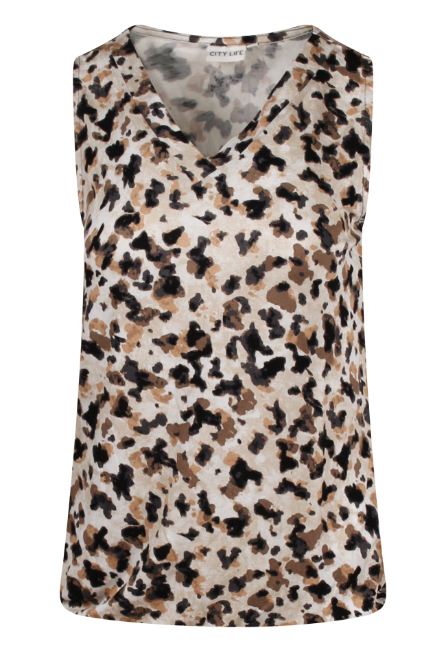 Deze mouwloze top van City Life is een must-have voor zomerse dagen! De vrouwelijke V-hals en het elastiek in de zoom zorgen voor een flatterend, blousend effect. Gemaakt van soepel vallende stof die licht en comfortabel aanvoelt, ideaal bij warm weer. De speelse dierenprint geeft een trendy touch. Perfect te combineren met een denim short voor een casual en stijlvolle zomerlook.